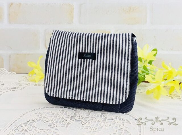 ぷっくり移動ポケット ヒッコリーxデニム Iichi ハンドメイド クラフト作品 手仕事品の通販